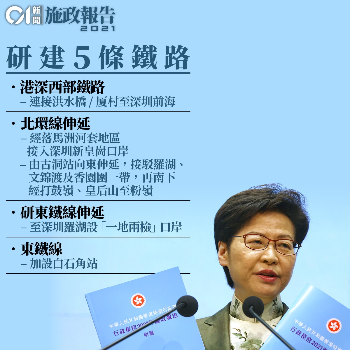 施政報告 消息 林鄭料下月宣布興建新鐵路連接新界北部和深圳前海 香港經濟日報 Topick 新聞 政治 D210917
